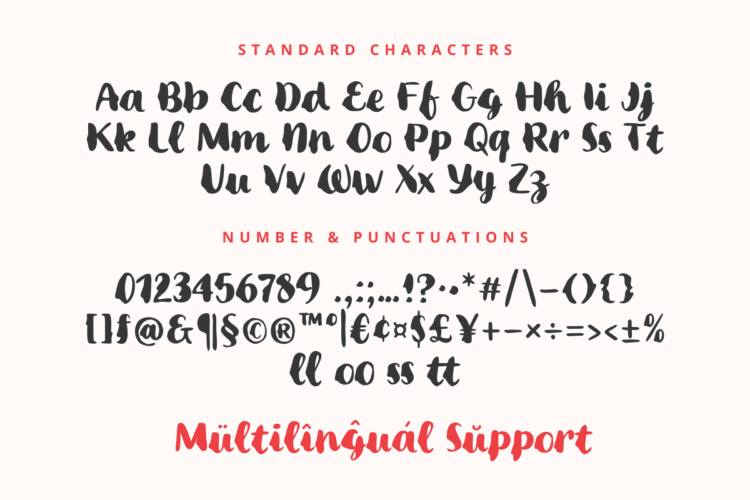 - Ligatures for a more fluid, handwritten look (like “ll”, “oo”, “ss”, “tt”)